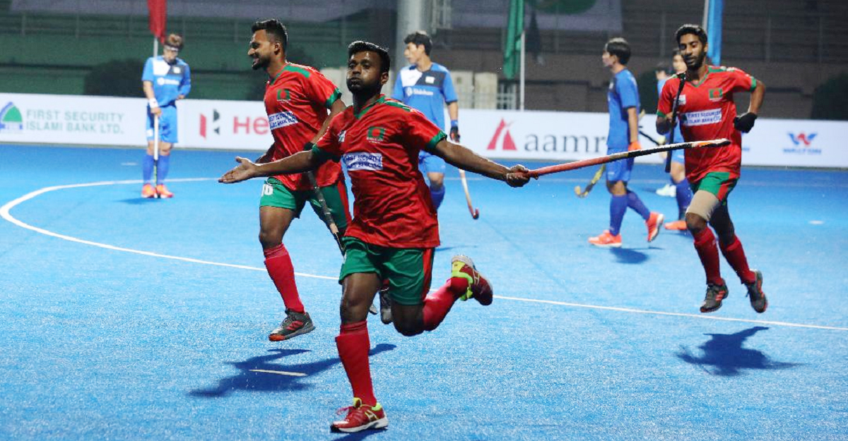 আট মিনিটে বাংলাদেশ লিড নেয়। ফজলে রাব্বির বাড়ানো লম্বা পাসে আরশাদ হোসেন বক্সের মধ্যে স্টিক ছোঁয়ান। বল জালে জড়ানোর সঙ্গে সঙ্গে স্টেডিয়ামে আনন্দের জোয়ার খেলে যায় যেন। এশিয়া তো বটেই বিশ্ব হকির অন্যতম শীর্ষ দল দক্ষিণ কোরিয়ার বিপক্ষে আশরাফুলরা লিড নেণ। কোরিয়া অবশ্য প্রথম কোয়ার্টারেই ম্যাচে সমতা আনে। বাংলাদেশের রক্ষণভাগ ও গোলরক্ষক কোরিয়ার আক্রমণভাগের নিশ্চিত গোল রুখতে গিয়ে পেনাল্টি স্ট্রোক উপহার দেয়। স্ট্রোক থেকে ম্যাচে সমতা আনে কোরিয়া।