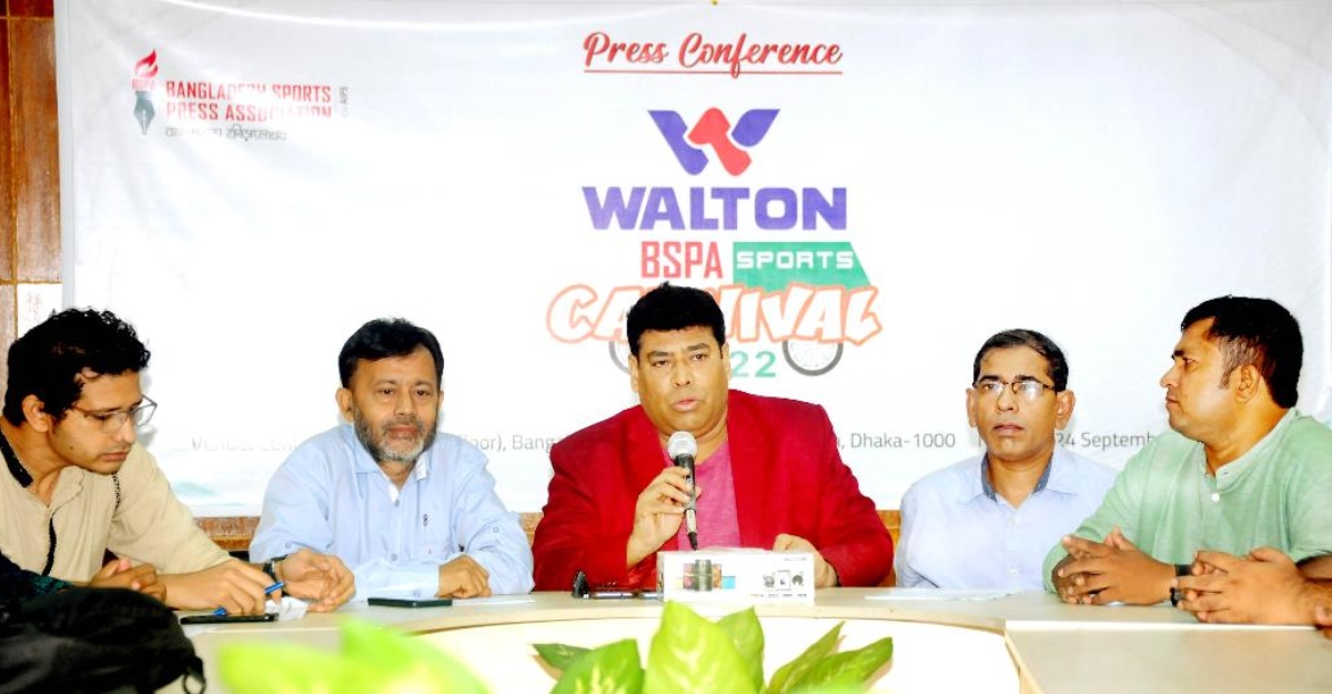 ওয়ালটন-বিএসপিএ স্পোর্টস কার্নিভাল উপলক্ষ্যে আজ শনিবার (২৪ সেপ্টেম্বর) দুপুরে বঙ্গবন্ধু জাতীয় স্টেডিয়ামের সভাকক্ষে এক সংবাদ সম্মেলন অনুষ্ঠিত হয়। সংবাদ সম্মেলনে উপস্থিত ছিলেন বিএসপিএ’র সভাপতি সনৎ বাবলা, ওয়ালটন গ্রুপের জ্যেষ্ঠ নির্বাহী পরিচালক এফএম ইকবাল বিন আনোয়ার (ডন), বিএসপিএ সাধারণ সম্পাদক মো. সামন হোসেন, ক্রীড়া উপ-কমিটির চেয়ারম্যান কাজী শহীদুল আলম ও সদস্য সচিব ফয়সাল তিতুমীর।