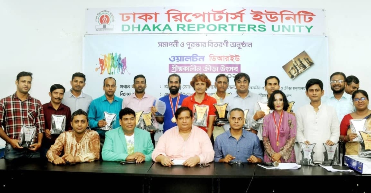 ডিআরইউ সভপতি নজরুল ইসলাম মিঠুর সভাপতিত্বে অনুষ্ঠানে স্বাগত বক্তব্য রাখেন সাধারণ সম্পাদক নুরুল ইসলাম হাসিব। ক্রীড়া সম্পাদক মাকসুদা লিসার সঞ্চালনায় পুরস্কার প্রদান অনুষ্ঠানে উপস্থিত ছিলেন ডিআরইউ সহ-সভাপতি মাহমুদুল হাসান, তথ্য প্রযুক্তি ও প্রশিক্ষণ সম্পাদক কামাল মোশারেফ, কার্যনির্বাহী সদস্য হাসান জাবেদ, সোলাইমান সালমান ও মোহাম্মদ ছলিম উল্লাহ (মেজবাহ)।