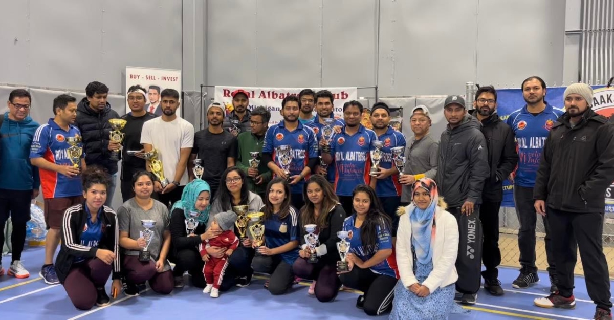 যুক্তরাষ্ট্র মিশিগানে জমজমাট আয়োজনে অনুষ্ঠিত হয়ে গেল বাংলাদেশি-আমেরিকান নারীদের ব্যাডমিন্টন টুর্নামেন্ট। শনিবার নবাই সিটির একটি অ্যাথলেটিকস ক্লাবে দুপুর থেকে সন্ধ্যা পর্যন্ত এ টুর্নামেন্ট অনুষ্ঠিত হয়। রয়্যাল অ্যালবাট্রস ক্লাব আয়োজিত টুর্নামেন্টে বিভিন্ন সিটির ১২ জন প্রবাসী নারী খেলোয়াড় অংশ নেন।