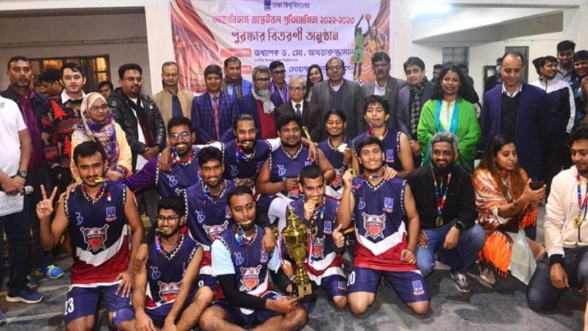 ঢাকা বিশ্ববিদ্যালয়ের আন্তঃবিভাগ বাস্কেটবল প্রতিযোগিতায় চ্যাম্পিয়ন হয়েছে ইন্টারন্যাশনাল বিজনেস বিভাগ। টানটান উত্তেজনার ফাইনালে বিশ্ববিদ্যালয়ের অণুজীব বিজ্ঞান বিভাগকে ৩৭-৩৩ পয়েন্টে হারিয়ে শিরোপা জিতেছে বিজনেস ফ্যাকাল্টির বিভাগটি। সম্প্রতি বিশ্ববিদ্যালয়ের শারীরিক শিক্ষা কেন্দ্রের জিমনেশিয়ামে প্রতিযোগিতার ফাইনাল খেলা অনুষ্ঠিত হয়।