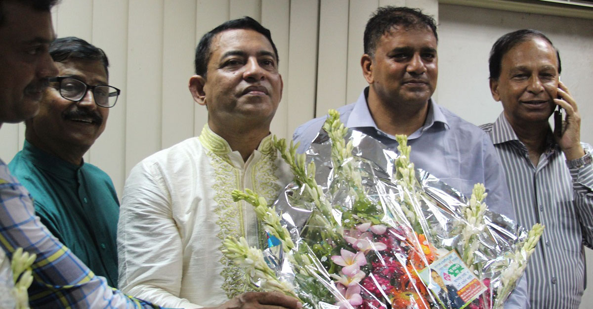 অ্যাথলেটিক্স ফেডারেশনের নির্বাচন শেষে নির্বাচিত সহ-সভাপতি নূর উদ্দিন চৌধুরী নয়ন (বাম থেকে তৃতীয়), সাধারণ সম্পাদক অ্যাডভোকেট আব্দুর রকিব মন্টু (ডান থেকে দ্বিতীয়), ও হারুনুর রশিদ (সর্বডানে)/ফাইল ছবি