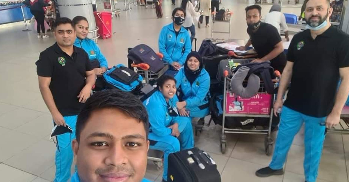 দিল্লির উদ্দেশে ঢাকা ছাড়ার সময় বিমানবন্দরে শ্যুটার শাকিলের সেলফিতে বাংলাদেশ দল।