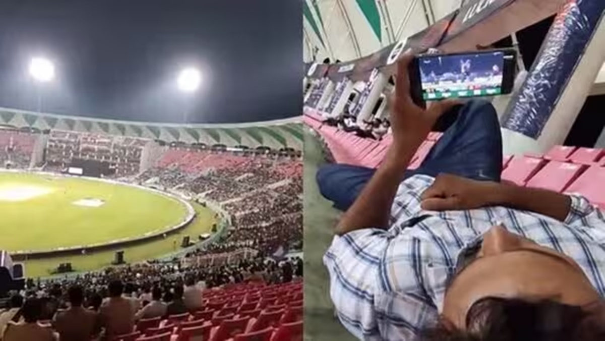 বিজয় নামক এক টুইটার ব্যবহারকারীর পোস্ট করা ভিডিওতে দেখা যায়, গ্যালারিতে উপস্থিত থেকেও মোবাইলে ম্যাচ দেখছেন এক ক্রিকেটপ্রমী। তাও চেয়ারে বসে নয়, বরং ফাঁকা চেয়ারের সারিতে শুয়ে শুয়ে মোবাইলে ম্যাচ উপভোগ করছেন তিনি।