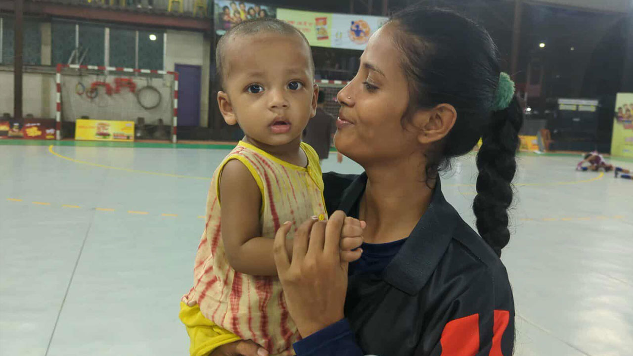 ১১ মাসের ছেলেকে নিয়ে মাঠে পুলিশের তানজিমা