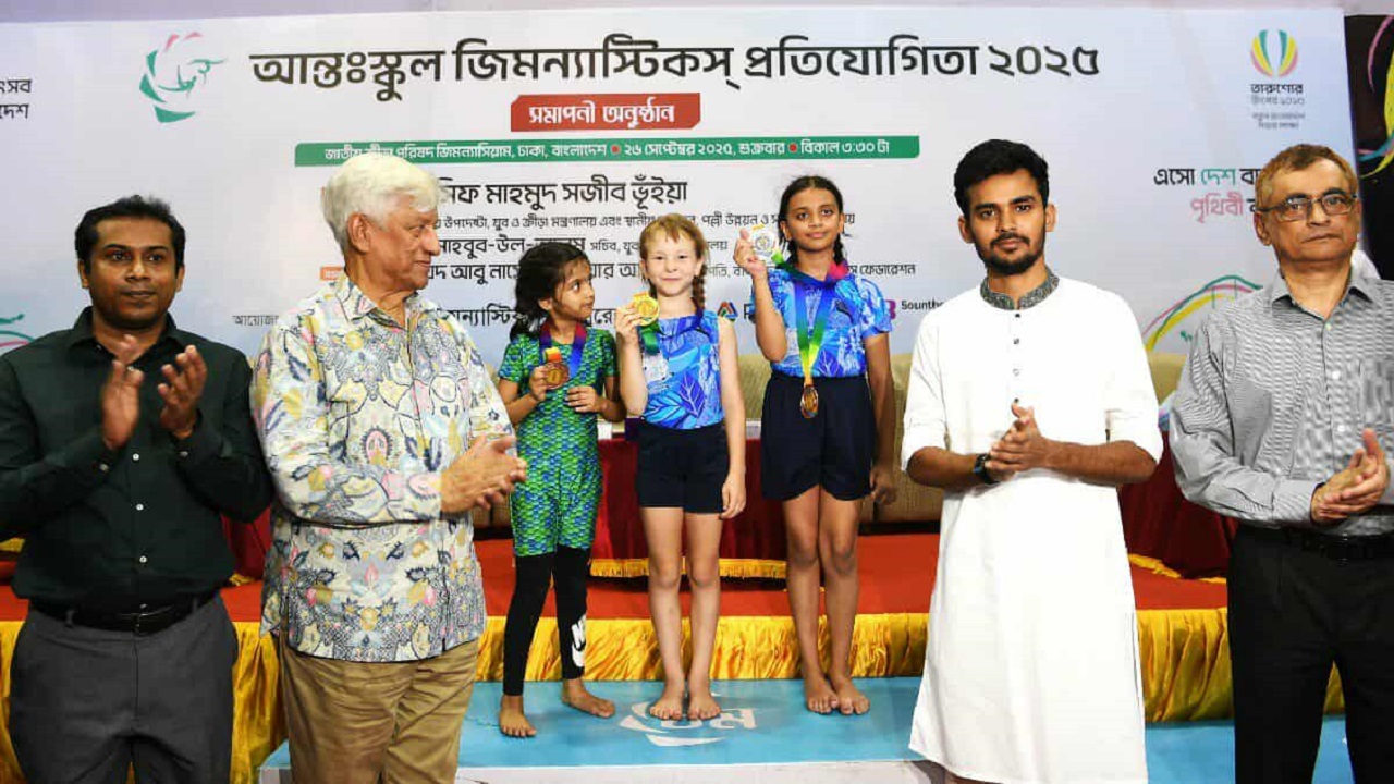 দেশের বিভিন্ন জেলার ৬৫টি স্কুল ও মাদ্রাসা নিয়ে অনুষ্ঠিত হয়েছে আন্ত: স্কুল জিমনাস্টিকস প্রতিযোগিতা। অনেক স্কুলে বাংলাদেশে কর্মরত বিদেশি পেশাদার ব্যক্তিদের সন্তানরা পড়াশোনা করেন। এমন কয়েকজন ক্ষুদে বিদেশি জিমন্যাস্টও স্কুলের হয়ে এই প্রতিযোগিতায় অংশগ্রহণ করেছেন। ২৬টি ইভেন্টে অংশ নেন ২১২ জন প্রতিযোগী। তারুণ্যের উৎসব আয়োজনের অংশ হিসেবে দ্বিতীয়বারের মতো এই আয়োজন করে বাংলাদেশ জিমনাস্টিকস ফেডারেশন। বিজয়ীদের পুরস্কার প্রদান করেন যুব ও ক্রীড়া উপদেষ্টা আসিফ মাহমুদ সজীব ভূঁইয়া।