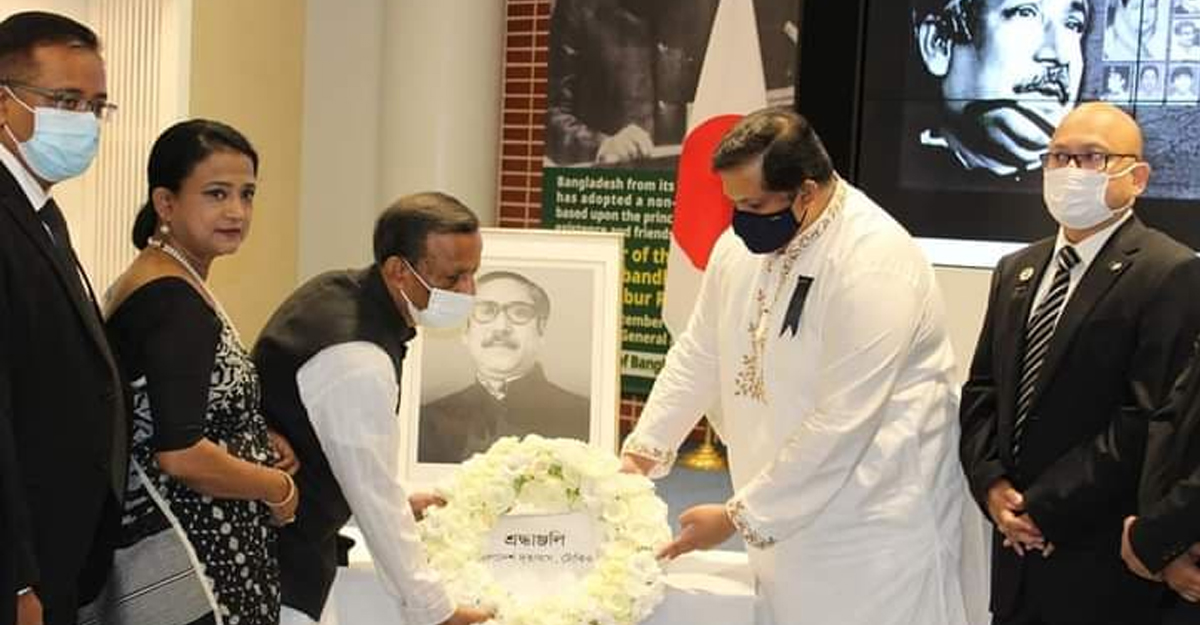 গভীর শ্রদ্ধা আর যথাযথ মর্যাদায় টোকিওতে বাংলাদেশ দূতাবাস স্বাধীনতার মহান স্থপতি জাতির পিতা বঙ্গবন্ধু শেখ মুজিবুর রহমানের ৪৬তম শাহাদত বার্ষিকী ও জাতীয় শোক দিবস ২০২১ পালন করেছে। সকালে দূতাবাস প্রাঙ্গণে জাতীয় পতাকা অর্ধনমিত করার মধ্য দিয়ে শোক দিবসের আনুষ্ঠানিকতা শুরু হয়। জাতীয় সংগীত পরিবেশনের সঙ্গে জাতীয় পতাকা অর্ধনমিত করেন জাপানে নিযুক্ত বাংলাদেশের রাষ্ট্রদূত শাহাবুদ্দিন আহমদ। এ সময় প্রধান অতিথি হিসেবে উপস্থিত ছিলেন যুব ও ক্রীড়া প্রতিমন্ত্রী জাহিদ আহসান রাসেল।