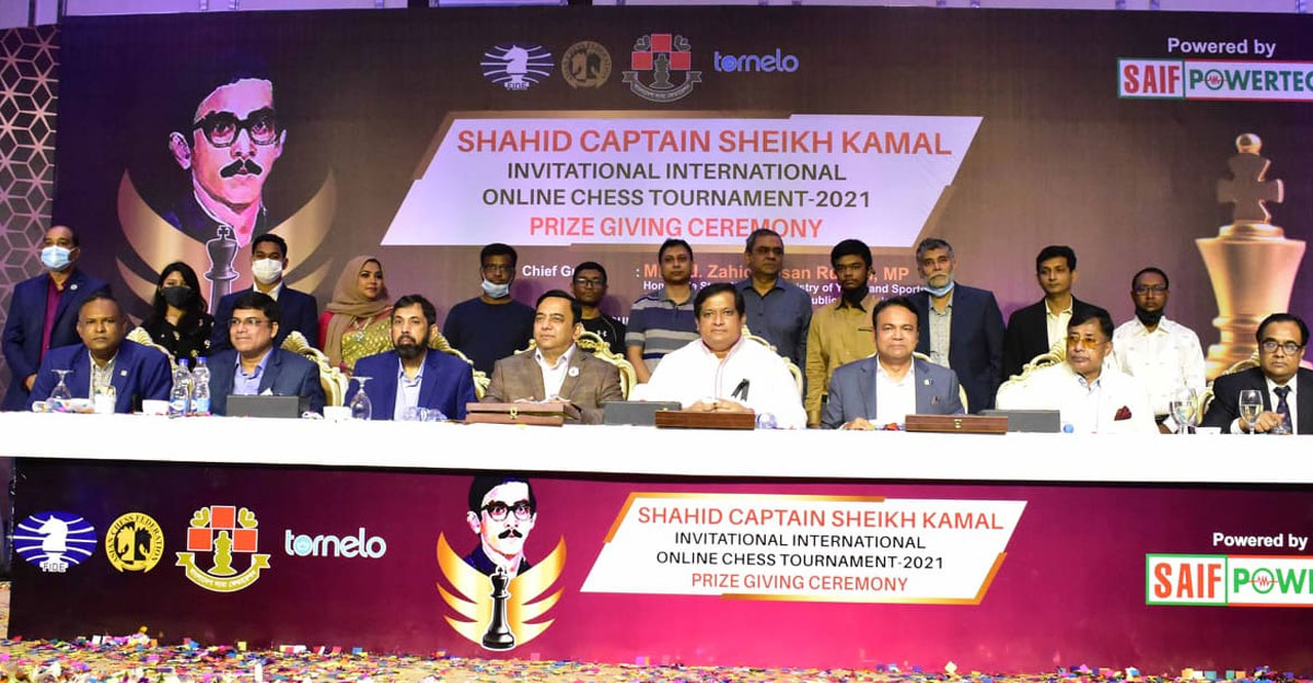 আজ (সোমবার) রাজধানীর এক হোটেলে শহীদ শেখ কামাল আন্তর্জাতিক দাবা টুর্নামেন্টের পুরস্কার প্রদান অনুষ্ঠান শেষে যুব ও ক্রীড়া প্রতিমন্ত্রী বলেন, ‘সামনে দাবা ফেডারেশন মাননীয় প্রধানমন্ত্রী ও শহীদ শেখ রাসেলের নামে টুর্নামেন্ট আয়োজন করবে। এর আগেই তাদের জায়গার সমস্যা সমাধান হবে।’