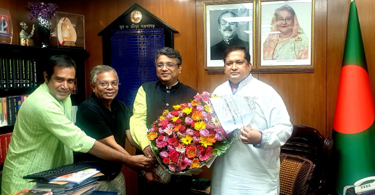 গত বৃহস্পতিবার (২ সেপ্টেম্বর) নবগঠিত বাংলাদেশ ফেন্সিং অ্যাসোসিয়েশনের অ্যাডহক কমিটি যুব ও ক্রীড়া প্রতিমন্ত্রী জাহিদ আহসান রাসেল এমপি’র সঙ্গে সৌজন্য সাক্ষাৎ করেছে। বাংলাদেশ ফেন্সিং অ্যাসোসিয়েশনের সভাপতি শোয়েব চৌধুরী, সাধারণ সম্পাদক সেলিম ওমরাও খান, যুগ্ম সাধারণ সম্পাদক রেজাউর রহমান সিনহা ও কোষাধ্যক্ষ সাইফুল হকসহ অনেকেই উপস্থিত ছিলেন।