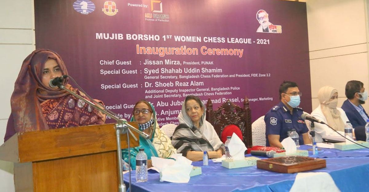 আজ প্রথম মহিলা দাবা লিগের উদ্বোধনী অনুষ্ঠানে প্রধান অতিথি ছিলেন পুলিশ নারী কল্যাণ (পুনাক) সমিতির সভাপতি মহাপরিদর্শক বেনজীর আহমেদের স্ত্রী জাফরিন মির্জা। প্রধান অতিথির বক্তব্যে তিনি বলেন, ‘সমাজের প্রতিটি ক্ষেত্রে নারীরা এগিয়ে যাচ্ছে। দাবায় রাণী হামিদের মতো কিংবদন্তি রয়েছে। দাবায় নারীরা সামনে আরও বেশি গৌরব বয়ে আনবে।’