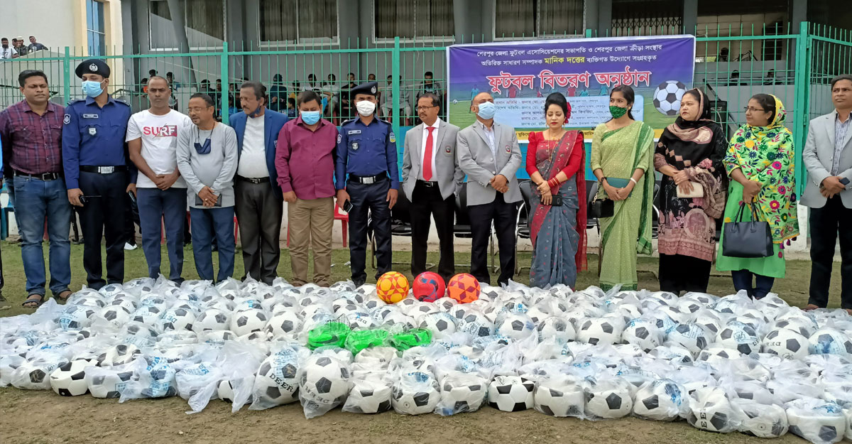 শেরপুরে বিভিন্ন ফুটবল ক্লাব ও শিক্ষা প্রতিষ্ঠানকে ৬ শতাধিক ফুটবল প্রদানের কার্যক্রম শুরু হয়েছে। আজ (শনিবার) বিকেল ৪ টায় ফুটবল বিতরণ অনুষ্ঠানের উদ্বোধন করেন জেলা প্রশাসক মোঃ মোমিনুর রশীদ।