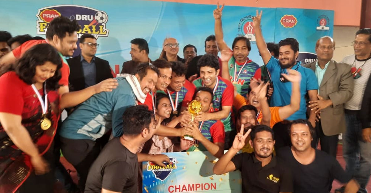 প্রাণ ডিআরইউ মিডিয়া ফুটবলে চ্যাম্পিয়ন হয়েছে ৭১ টিভি। আজ (শনিবার) শহীদ ক্যাপ্টেন (অব.) মনসুর আলী হ্যান্ডবল স্টেডিয়ামে চ্যানেল আইকে টাইব্রেকারে হারিয়ে শিরোপা জেতে তারা। নির্ধারিত সময়ে ম্যাচটি গোলশূন্য ড্র ছিল।
