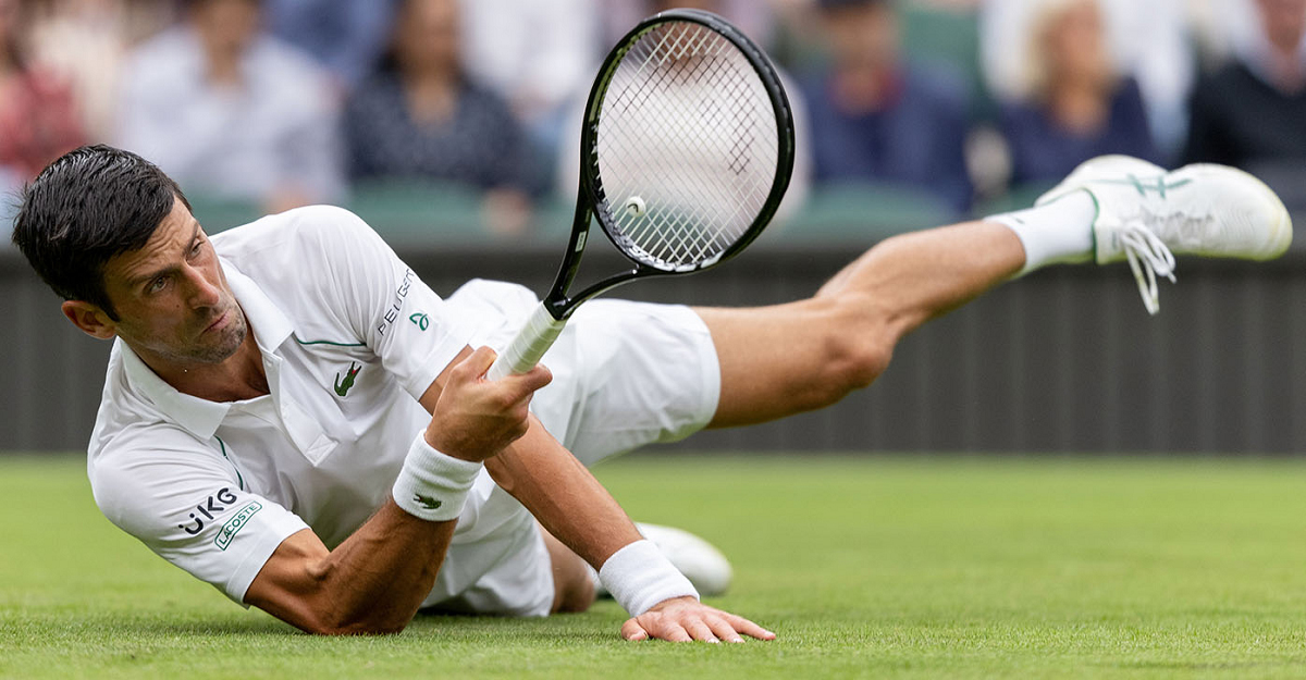 জকোভিচ ভূপাতিত। উইম্বলডনের প্রথম রাউন্ডে প্রথম সেটে তাকে এভাবেই চমকে দিয়েছিলেন জ্যাক ড্রেপার/গেটিইমেজ