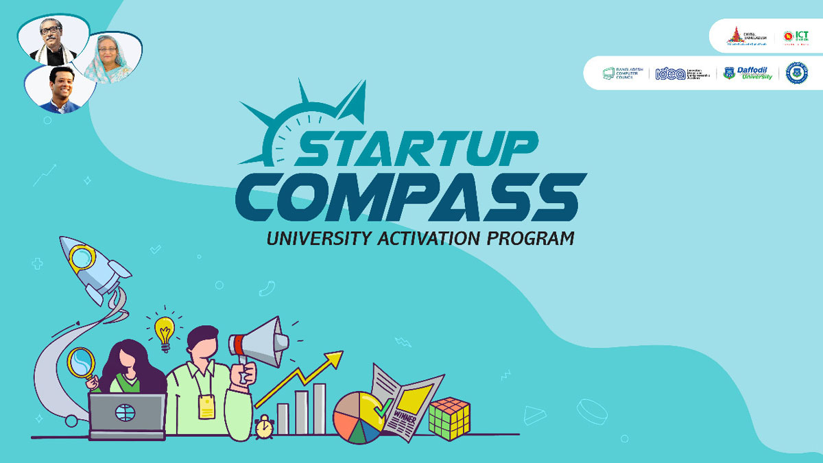 সম্ভাবনাময় উদ্যোক্তাদের খোঁজে আশুলিয়ার ড্যাফোডিল স্মার্ট সিটিতে মঙ্গলবার শুরু হয়েছে ‘স্টার্টআপ কম্পাস’। বিকেলে ড্যাফোডিল ইন্টারন্যাশনাল ইউনিভার্সিটি (ডিআইইউ) এর ক্যাম্পাসে অনুষ্ঠানের উদ্বোধন করবেন তথ্য ও যোগাযোগ প্রযুক্তি বিভাগের সিনিয়র সচিব এন এম জিয়াউল আলম। উদ্বোধনী অনুষ্ঠানে আবেদন প্রক্রিয়াসহ বিস্তারিত তুলে ধরবে আইসিটি বিভাগের আইডিয়া প্রকল্প।