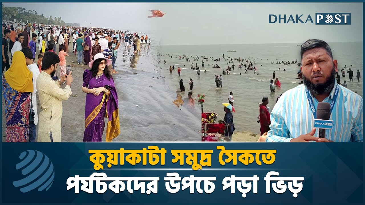 কুয়াকাটা সমুদ্র সৈকতে পর্যটকদের উপচে পড়া ভিড়