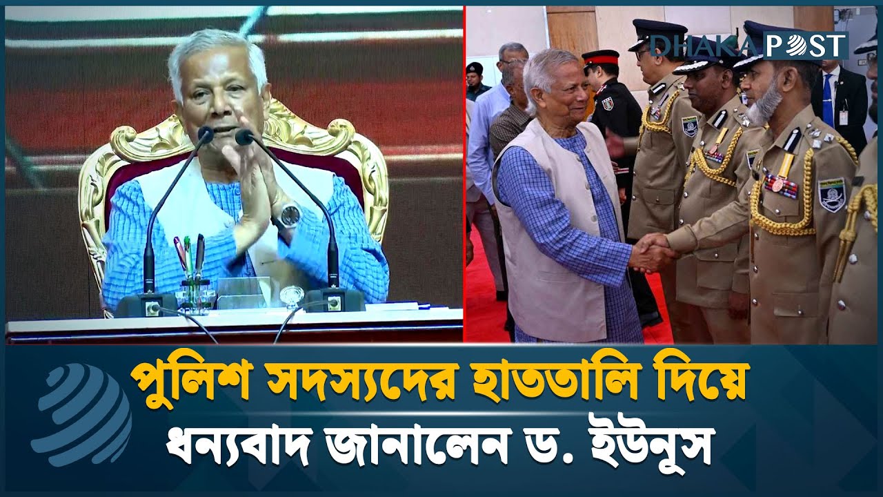 পুলিশ সদস্যদের হাততালি দিয়ে ধন্যবাদ জানালেন ড. ইউনূস
