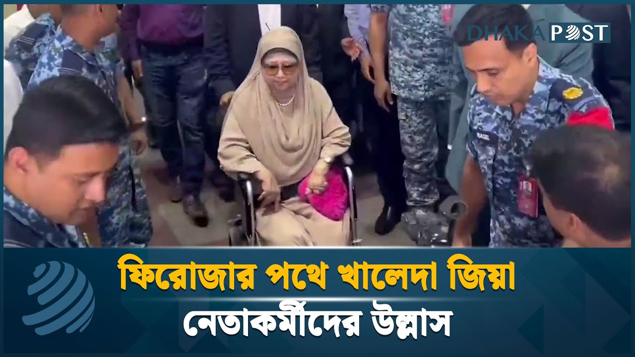 বিমানবন্দর থেকে গুলশানের পথে খালেদা জিয়া