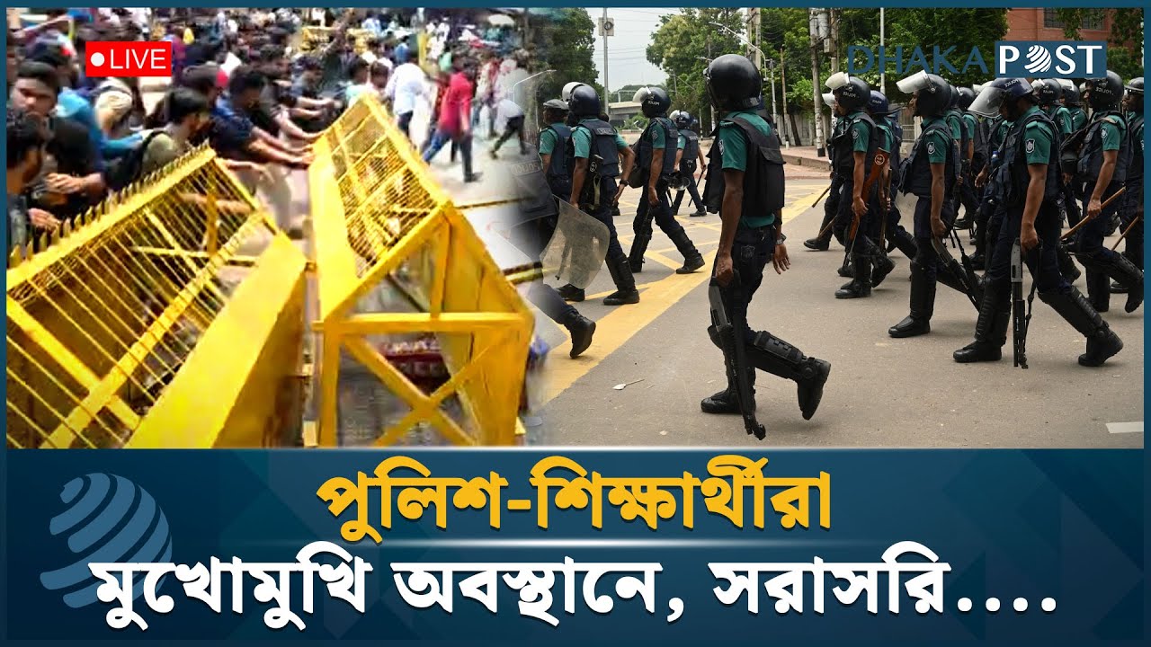 পুলিশ-শিক্ষার্থীরা মুখোমুখি, টিয়ারশেল-সাউন্ড গ্রেনেড নিক্ষেপ