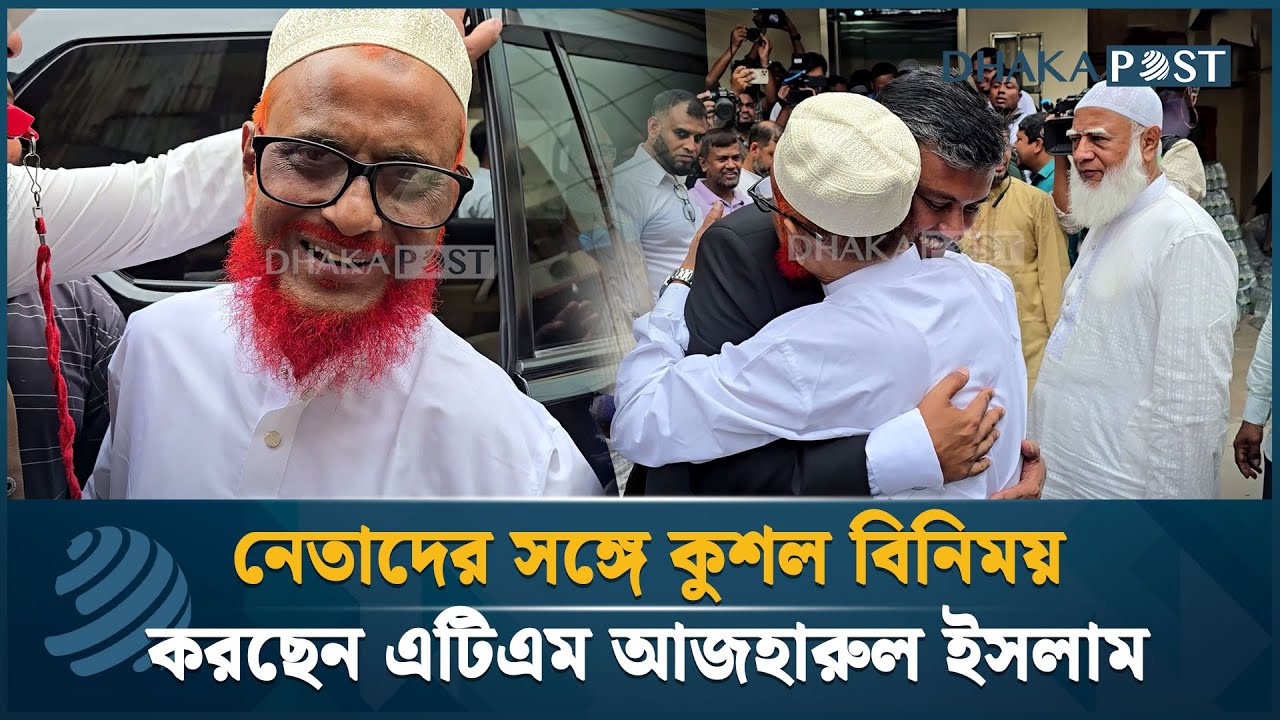 কারামুক্ত হয়ে জামায়াত নেতাদের সঙ্গে কুশল বিনিময় করছেন আজহারুল ইসলাম