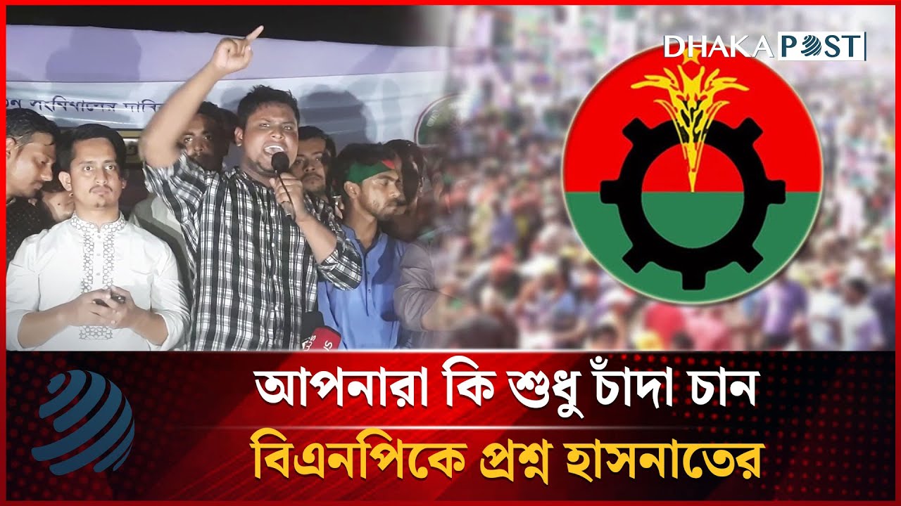 আপনারা কি শুধু চাঁ'দা চান: বিএনপিকে প্রশ্ন হাসনাতের