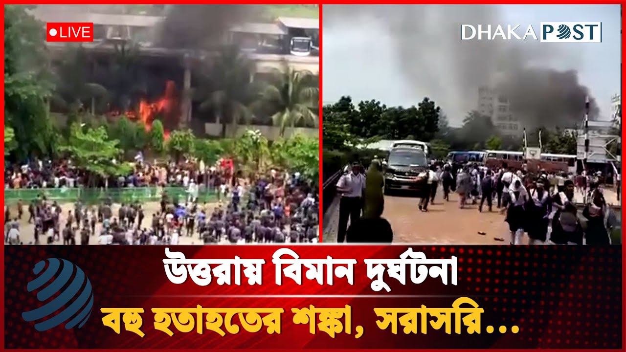 রাজধানীর উত্তরায় একটি প্রশিক্ষণ বিমান বিধ্বস্ত হয়েছে। আজ (সোমবার) দুপুরের দিকে উত্তরায় মাইলস্টোন কলেজ এলাকায় এটি বিধ্বস্ত হয়। এতে হতাহতের শঙ্কা করা হচ্ছে। তবে এখনও কারও নিহত হওয়ার নিশ্চিত কোনো তথ্য পাওয়া যায়নি।