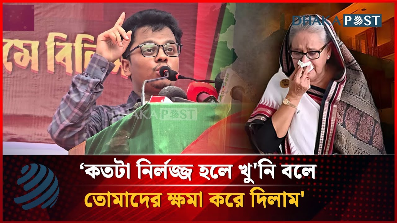'কতটা নির্লজ্জ হলে খু'নি বলে, তোমাদের ক্ষমা করে দিলাম' ঢাকা পোস্ট ডেস্ক ০৫ আগস্ট ২০২৫, ১২:৫৩ 'কতটা নির্লজ্জ হলে খু'নি বলে, তোমাদের ক্ষমা করে দিলাম' বিজ্ঞাপন
