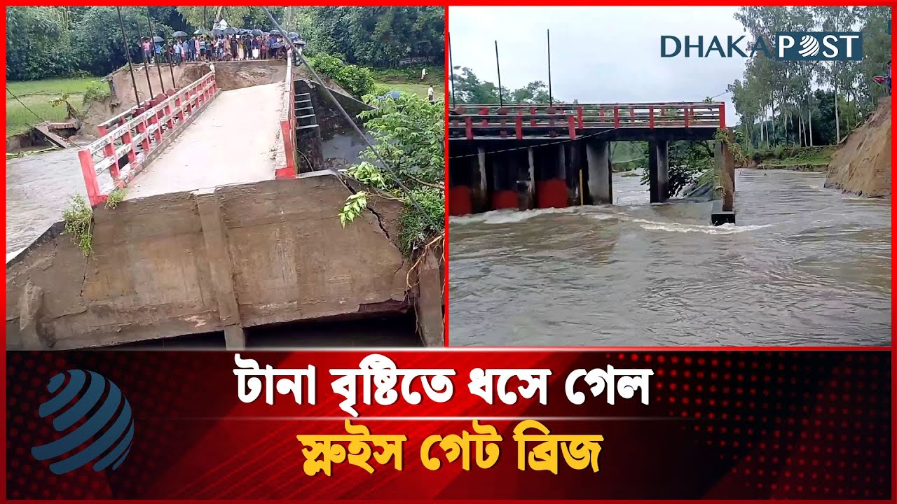 টানা বৃষ্টিতে স্লুইস গেট ব্রিজ ধসে হাজারো মানুষের দুর্ভোগ