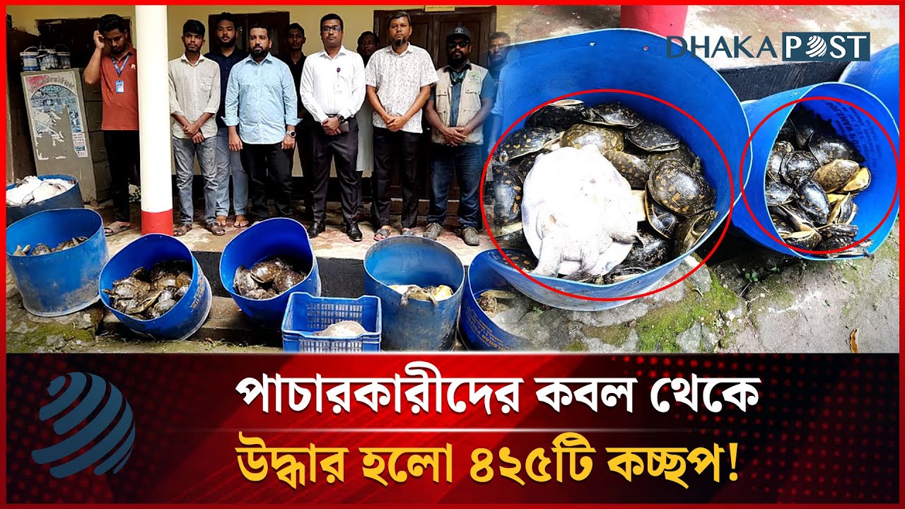 পাচারকারীদের কবল থেকে উদ্ধার হলো ৪২৫টি কচ্ছপ
