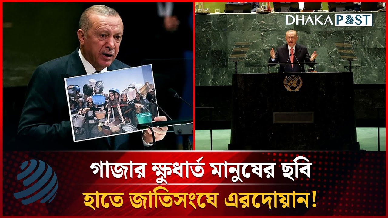 গাজার ক্ষুধার্ত মানুষের ছবি হাতে জাতিসংঘে এরদোয়ান