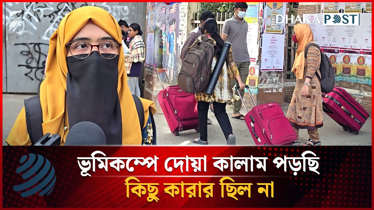 কয়েক ঘণ্টার ব্যবধানে চার দফা ভূমিকম্পের পর উদ্ভূত পরিস্থিতিতে হল ছাড়ছেন ঢাকা বিশ্ববিদ্যালয়ের (ঢাবি) শিক্ষার্থীরা।