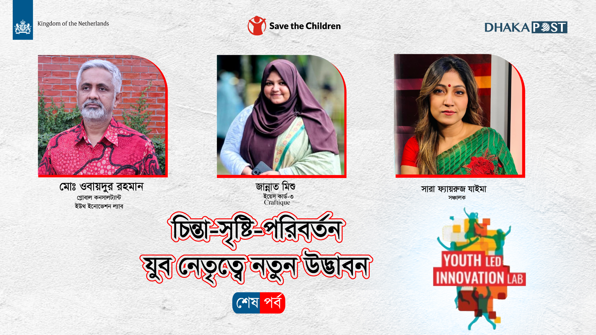 চিন্তা, সৃষ্টি, পরিবর্তন: যুব নেতৃত্বে নতুন উদ্ভাবন ঢাকা পোস্ট ডেস্ক ১৩ ডিসেম্বর ২০২৫, ১২:২০ চিন্তা, সৃষ্টি, পরিবর্তন: যুব নেতৃত্বে নতুন উদ্ভাবন - শেষ পর্ব