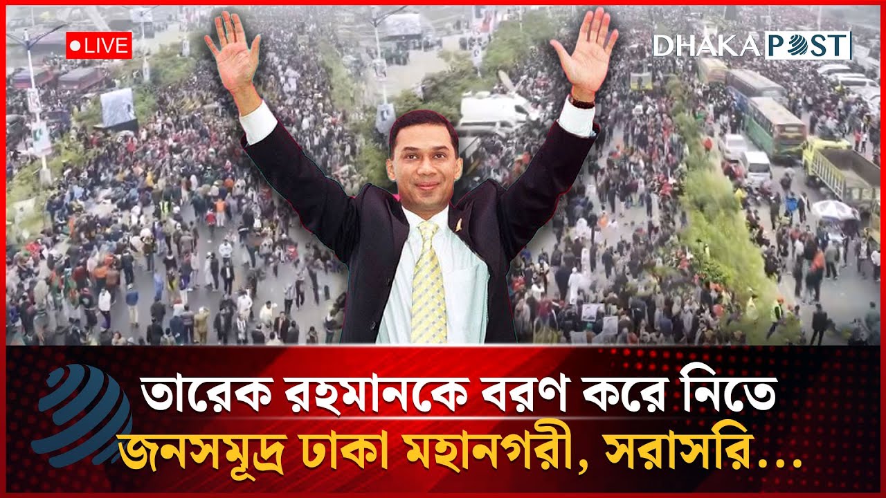 ৬ হাজার ৩১৪ দিন পর ঢাকায় পৌঁছালেন বিএনপির ভারপ্রাপ্ত চেয়ারম্যান তারেক রহমান। তাকে বহনকারী উড়োজাহাজটি বৃহস্পতিবার (২৫ ডিসেম্বর) বেলা ১১টা ৪০ মিনিটে ঢাকার হযরত শাহজালাল আন্তর্জাতিক বিমানবন্দরে অবতরণ করেছে।