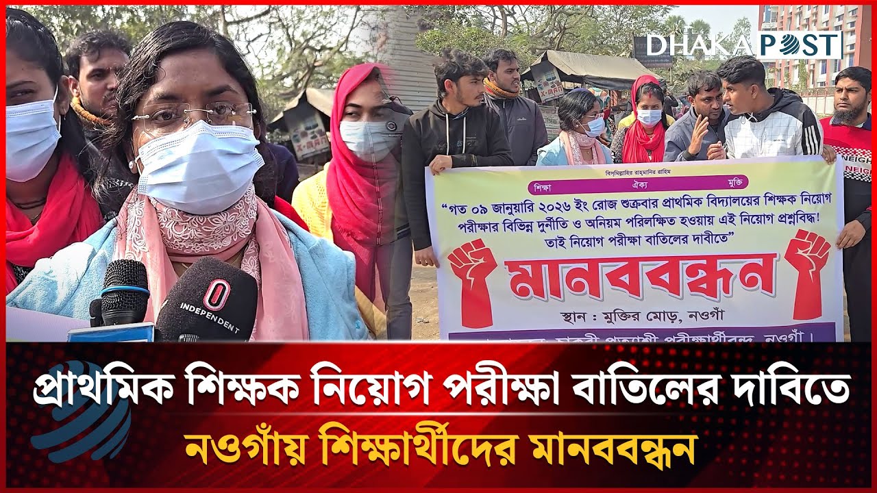 প্রাথমিক শিক্ষক নিয়োগ পরীক্ষা বাতিলের দাবিতে নওগাঁয় শিক্ষার্থীদের মানববন ঢাকা পোস্ট ডেস্ক ১১ জানুয়ারি ২০২৬, ১৪:১৪ প্রাথমিক শিক্ষক নিয়োগ পরীক্ষা বাতিলের দাবিতে নওগাঁয় শিক্ষার্থীদের মানববন্ধন বিজ্ঞাপন