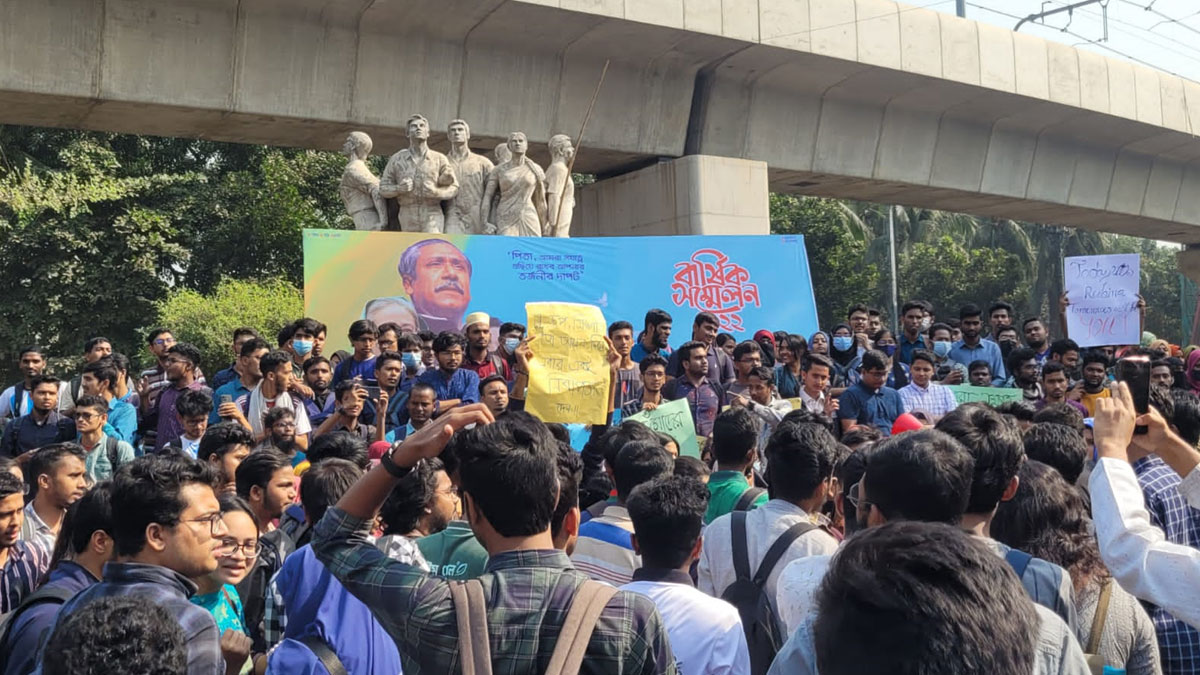 রাজু ভাস্কর্যের পাদদেশে সমবেত হয়ে পরবর্তীতে শিক্ষার্থীরা বিক্ষোভ মিছিল বের করে। বিক্ষোভ মিছিলটি ক্যাম্পাসের বিভিন্ন সড়ক প্রদক্ষিণ করে পুনরায় রাজু ভাস্কর্যে এসে শেষ হয়।