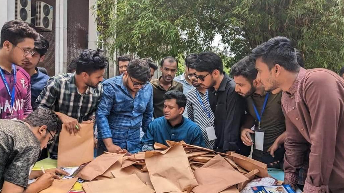 আজ (শুক্রবার) বিজ্ঞান ইউনিটের ভর্তি পরীক্ষা চলাকালীন ক্যাম্পাস ঘুরে দেখা যায়, কলাভবন, কার্জন হলসহ বিভিন্ন পয়েন্টে ভর্তি পরীক্ষার্থীদের সহায়তায় হেল্প ডেস্ক, শিক্ষার্থীদের ব্যবহৃত অথচ পরীক্ষা কেন্দ্রে নেওয়ার অনুপযোগী জিনিসপত্র রাখার ব্যবস্থা, জরুরি মেডিকেল সেবা, জয় বাংলা বাইক সার্ভিস, মাস্ক, কলম ও পানি সারবরাহ করেন তারা।