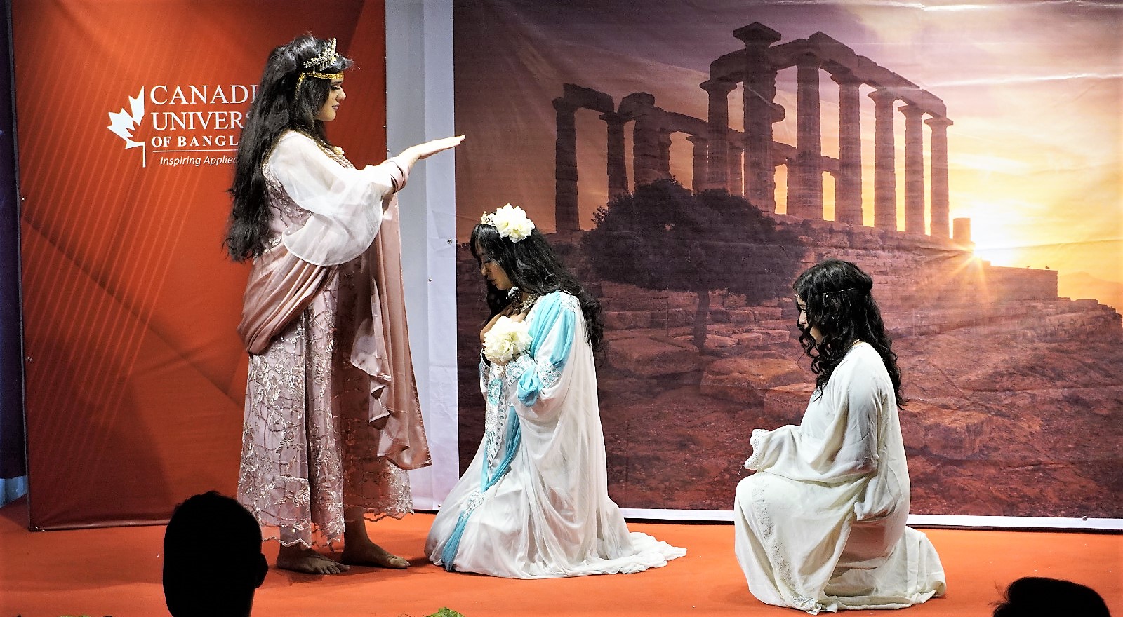 কানাডিয়ান ইউনিভার্সিটি অব বাংলাদেশের (সিইউবি) ইংলিশ ডিপার্টমেন্টের সহযোগিতায় ‘সিইউবি কারপে ডিয়াম ক্লাব’ (ইংলিশ ক্লাব) মঞ্চস্থ করল গ্রিক মিথোলোজি ড্রামা ‘দা ট্র্যাজিক ফেইট অব মেডুসা’। অনুষ্ঠানে প্রধান অতিথি হিসেবে উপস্থিত ছিলেন প্রখ্যাত চিত্রনায়ক রিয়াজ আহমেদ।