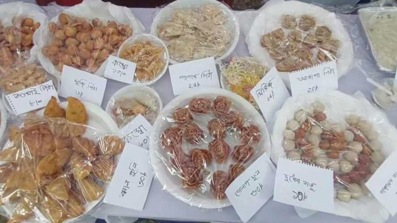 সরেজমিনে মেলা ঘুরে দেখা যায়, দেশি-বিদেশি প্রায় দেড় শতাধিক বাহারি পদের পিঠা নিয়ে প্রায় অর্ধশতাধিক স্টল বসিয়েছেন শিক্ষার্থীরা। স্টলগুলোতে দুধ পুলি, চন্দ্র পুলি, নারকেল পুলি, খোলা চিতই, তেল পিঠা, নকশী পিঠা, মালাই বিহার, সুজির বড়া, জামাই পিঠা, পাটি সাপটা, গোলাপ ফুল, ডাবের পিঠা, লবঙ্গ পিঠা, শামুক পিঠা, রুপালি পিঠা, বুটের বরফি, মোহন ভোগ, ডিম সুন্দরী, মাছের পিঠা, গাজরের হালুয়া ডিমপুরি, গোলাপ, আরশি নগর, ঝাল-মিষ্টি, হৃদয়হরণ পিঠা, সূর্যমুখী, পাকোয়ান পিঠা, রসে ভরা সবজি পিঠা, রস মলাই খিরপুলিসহ প্রায় দেড় শতাধিক পদের পিঠা শোভা পাচ্ছে। বাহারি পদের এসব পিঠা খেতে শিক্ষার্থীদের ভিড় ছিল চোখে পড়ার মতো। ১০ টাকা থেকে শুরু করে বিভিন্ন দামে বিক্রি হচ্ছে এসব পিঠা।