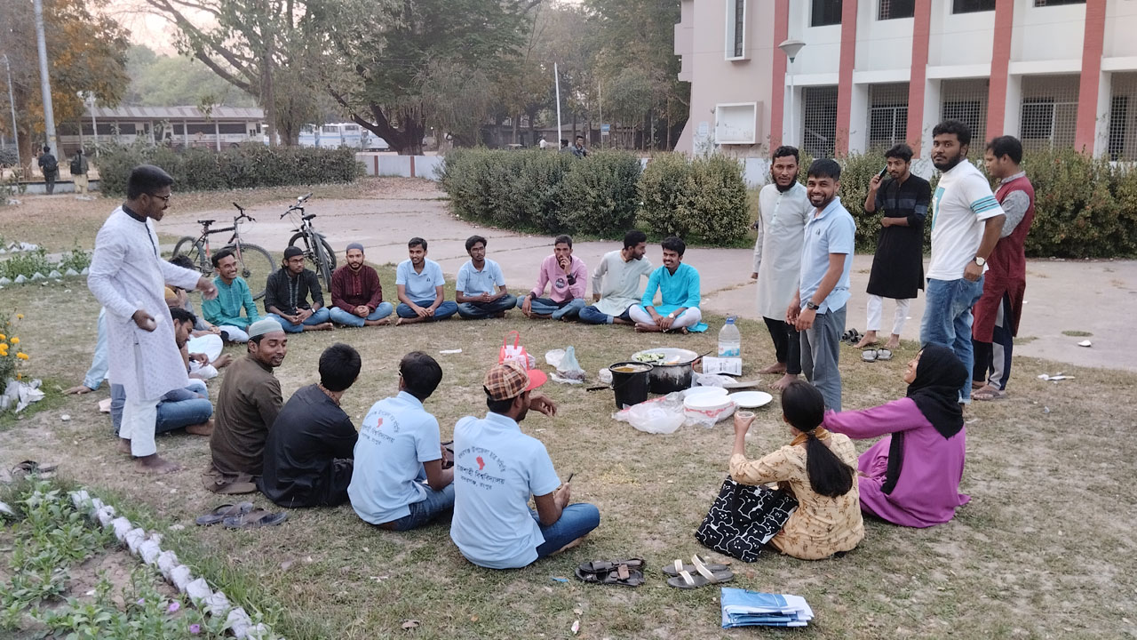 বন্ধুদের সঙ্গে ইফতারে অংশগ্রহণকারী আইন বিভাগের শিক্ষার্থী মো. মারুফ বলেন, ক্যাম্পাসের মধ্যে উৎসবমুখর পরিবেশে সবাই ইফতার করা আসলেই অনেক সুন্দর ব্যাপার। হাদিসেও সবাই একসঙ্গে ইফতারের বিষয়টি গুরুত্বের সঙ্গে বর্ণনা করা হয়েছে। এতে সবার মধ্যে মিল-মহব্বত সৃষ্টি হয়, আর রমজানের বরকতে সেটা দীর্ঘস্থায়ীও হয়।