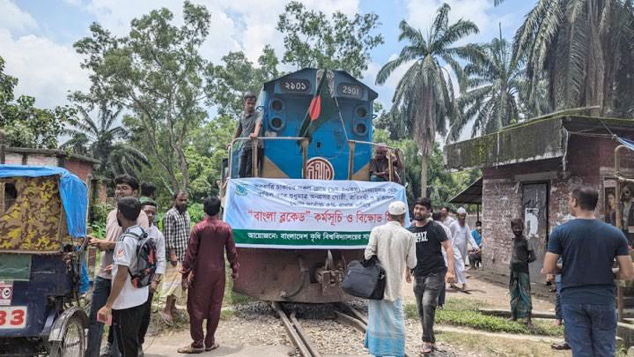 আদালতের স্থিতাবস্থা প্রত্যাখ্যান করে বাকৃবিতে রেলপথ অবরোধ