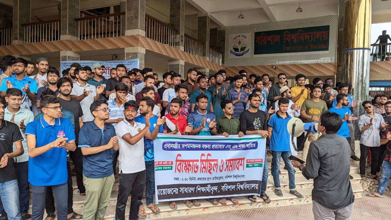 সরকারি চাকরিতে কোটা সংস্কারের আন্দোলন নিয়ে প্রধানমন্ত্রী শেখ হাসিনার অপমানজনক বক্তব্য প্রত্যাহার এবং এক দফা দাবিতে বরিশাল বিশ্ববিদ্যালয়ে বিক্ষোভ মিছিল ও সমাবেশ করেছেন কোটাবিরোধী আন্দোলনকারী শিক্ষার্থীরা। শিক্ষার্থীরা এসময় সরকারপ্রধানের এমন বক্তব্যের সমালোচনা করেন এবং অনতিবিলম্বে প্রত্যাহারের দাবি জানান।