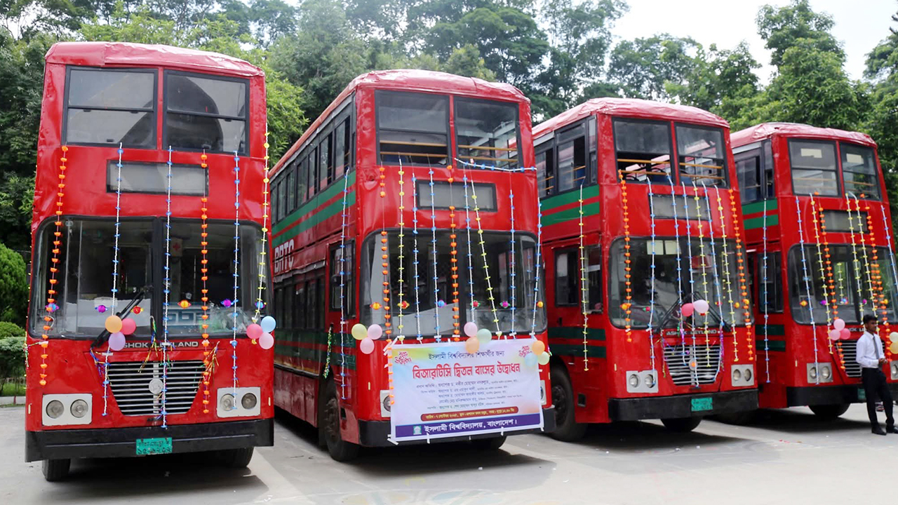 ইসলামী বিশ্ববিদ্যালয়ের (ইবি) পরিবহন পুলে শিক্ষার্থী বহনের জন্য নতুন করে চারটি ডাবল ডেকার বাস সংযুক্ত করা হয়েছে। তবে এসব বাসের অবস্থা অত্যন্ত নাজুক। বডির বিভিন্ন স্থানে ফাটল, সামনের গ্লাস ও জানালাগুলো জোড়াতালি দিয়ে ঠিক করা, দরজায় হাতল ও হুইপার অনুপস্থিতসহ রয়েছে নানাবিধ ত্রুটি।