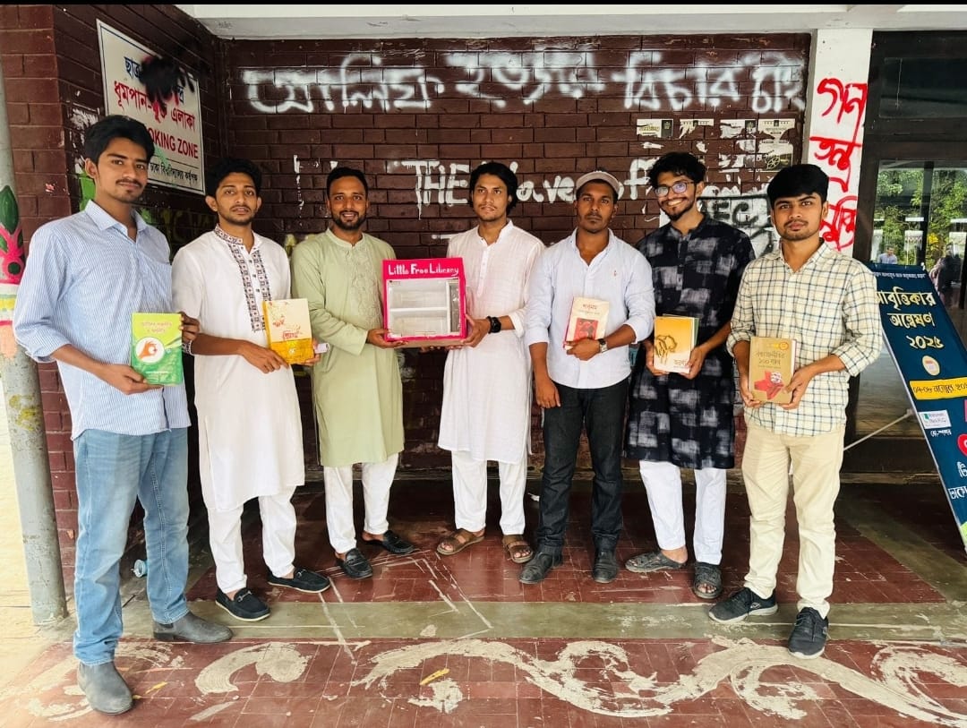 জাতীয় বিপ্লব ও সংহতি দিবস উপলক্ষে ঢাকা বিশ্ববিদ্যালয়ে (ঢাবি) ছাত্রদল নেতাদের উদ্যোগে ‘লিটল ফ্রি লাইব্রেরি’ স্থাপন করা হয়েছে। শিক্ষার্থীরা এই লাইব্রেরি থেকে বই পড়ার পাশাপাশি বই দানও করতে পারবেন বলে জানিয়েছেন আয়োজকরা।
