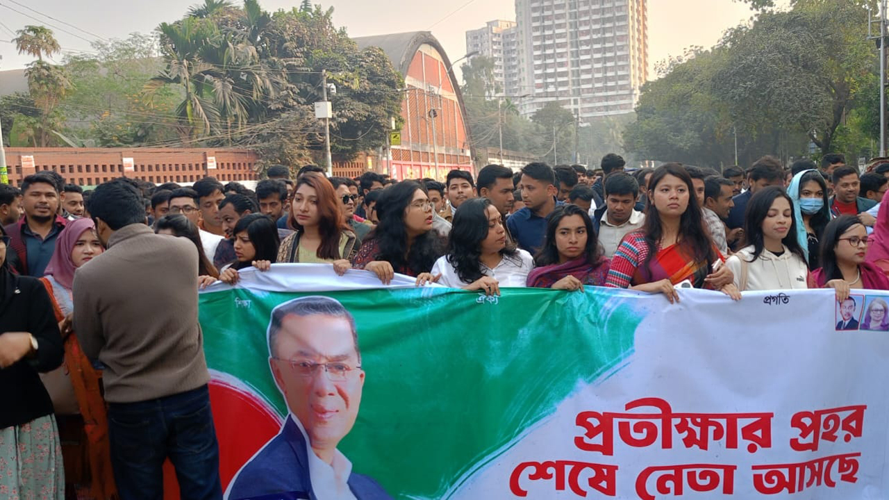 তারেক রহমানের স্বদেশ প্রত্যাবর্তন : ঢাবিতে ছাত্রদলের শুভেচ্ছা মিছিল