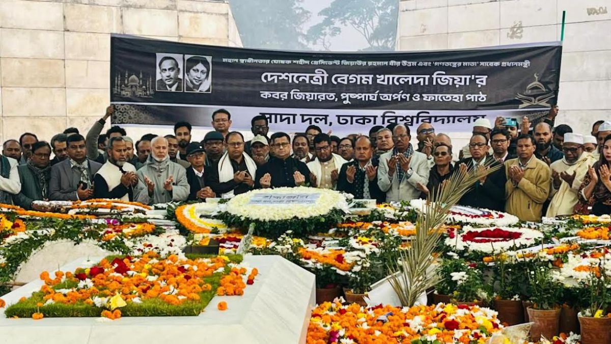 শহীদ প্রেসিডেন্ট জিয়াউর রহমান এবং সাবেক প্রধানমন্ত্রী খালেদা জিয়ার কবর জিয়ারত, পুষ্পার্ঘ অর্পণ ও ফাতেহা পাঠ করেছে বাংলাদেশি জাতীয়তাবাদে বিশ্বাসী ঢাকা বিশ্ববিদ্যালয়ের শিক্ষকদের সংগঠন (ঢাবি) সাদা দল।