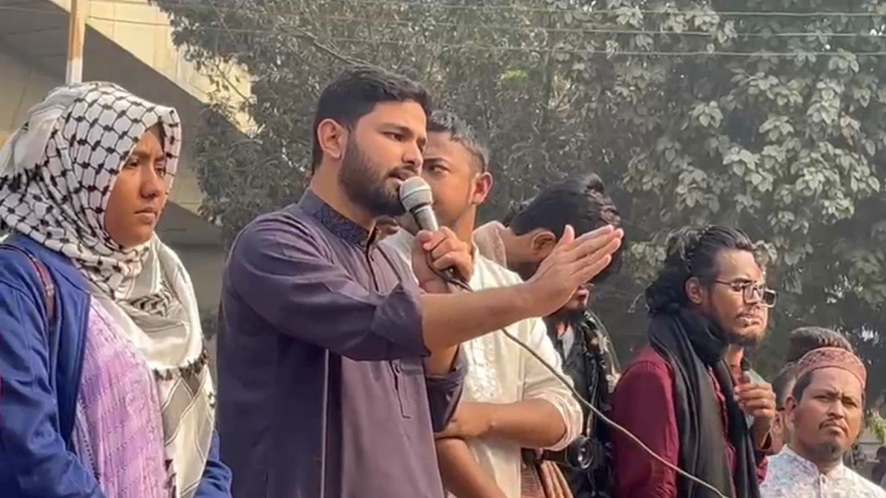 শুক্রবার (১৬ জানুয়ারি) জুম্মার নামাজের পর ঢাকা বিশ্ববিদ্যালয়ে বিক্ষোভ মিছিল শেষে টিএসসির সন্ত্রাসবিরোধী রাজু ভাস্কর্যের পাদদেশে অনুষ্ঠিত এক সমাবেশে তিনি এসব কথা বলেন।