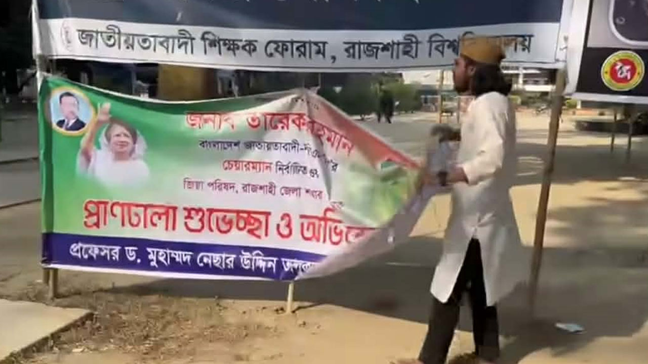 ক্যাম্পাসে টাঙানো জিয়া পরিষদের ব্যানার খুলে ফেললেন রাকসুর জিএস