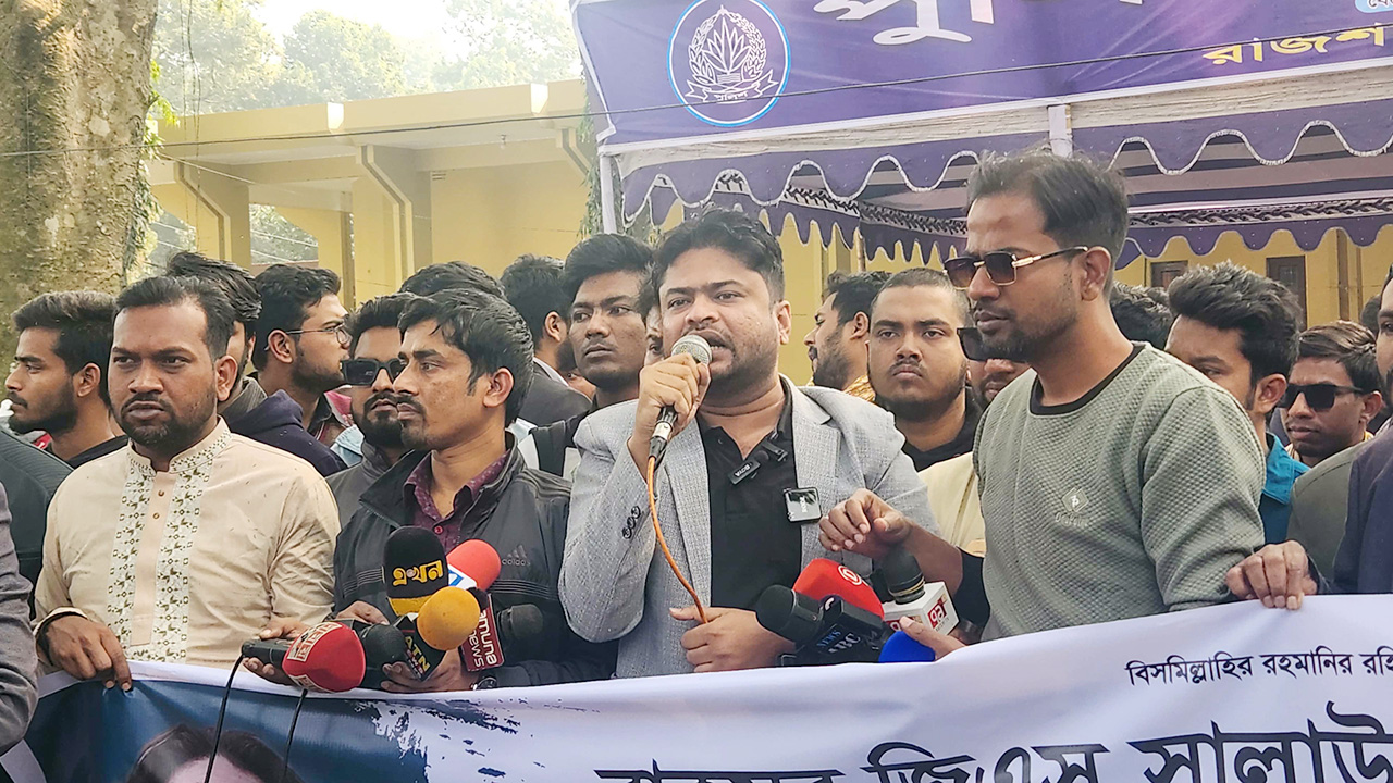 রাজশাহী বিশ্ববিদ্যালয় (রাবি) শাখা ছাত্রদলের সভাপতি সুলতান আহমেদ রাহী বলেছেন, রাজশাহী বিশ্ববিদ্যালয়ের উপাচার্যকে ২৪ ঘণ্টা সময় দিয়ে বলতে চাই, আপনারা দ্রুত এই উন্মাদের (সালাহউদ্দিন আম্মার) চিকিৎসা নিশ্চিত করুন। যদি কোনো ব্যবস্থা না নেওয়া হয়, তাহলে ধরে নেব এই উপাচার্য ও উপাচার্যদ্বয়ের নির্দেশেই সে তারেক রহমানের ব্যানার ছিড়েছে।
