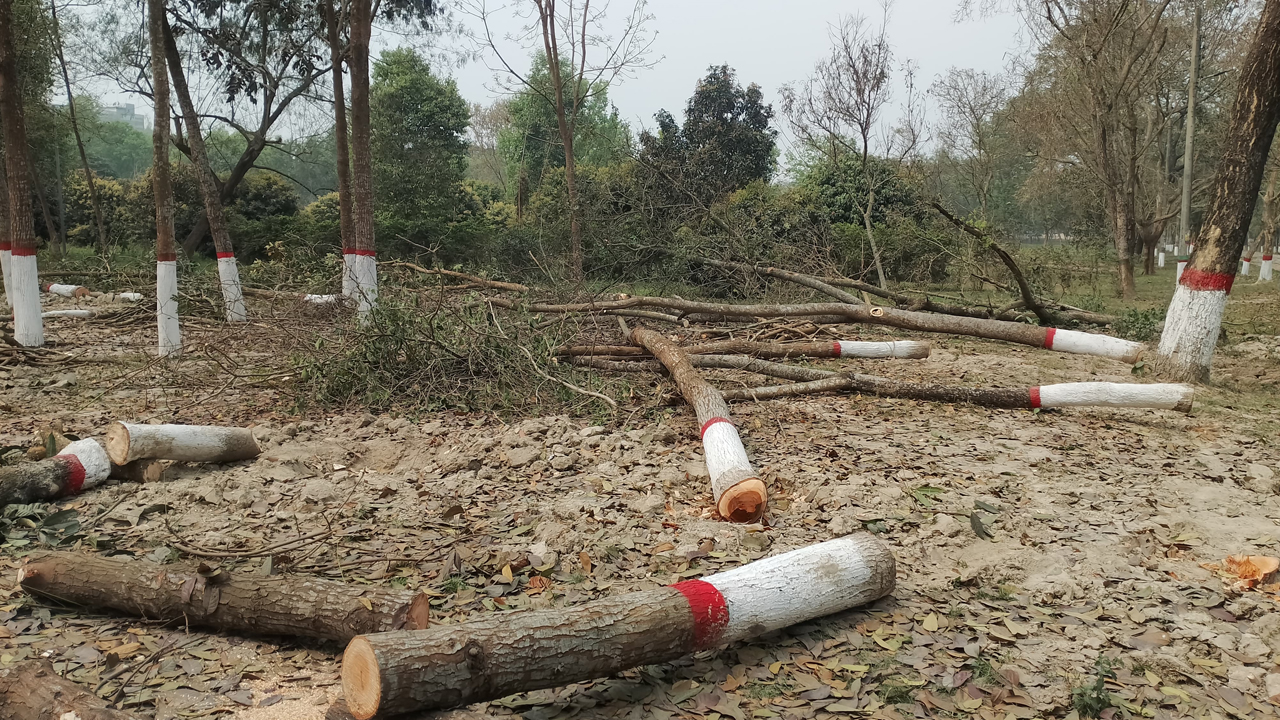 বেরোবিতে ছুটির দিনে অর্ধশত গাছ কর্তন, তোপের মুখে স্থগিত