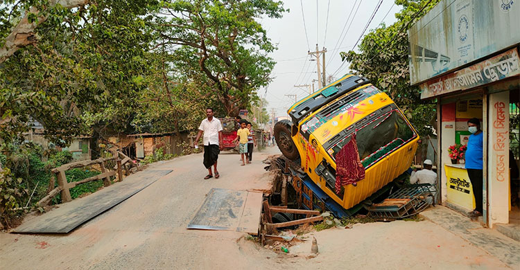 ফলে সেতু দিয়ে চলাচল বেশ ঝুঁকিপূর্ণ হয়ে ওঠে। পরে সওজ কর্তৃপক্ষ সেতুর মাঝে একটি স্টিলের প্লেট বসিয়ে ঝুঁকিপূর্ণ সেতু চিহ্নিত করে সাইনবোর্ড ঝুলিয়ে দেয়। বুধবার টাইলসভর্তি একটি ট্রাক ওই সেতুতে উঠলে একাংশ ও রেলিং ভেঙে খালে পড়ে যায়।