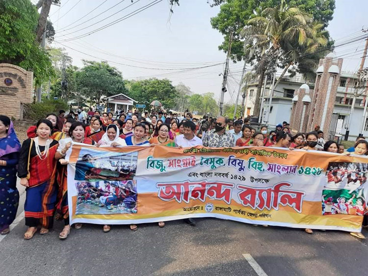 রাঙ্গামাটি সরকারি কলেজ প্রাঙ্গণ থেকে বর্ণাঢ্য আনন্দ শোভাযাত্রা বের হয়ে শহরের প্রধান প্রধান সড়ক প্রদক্ষিণ শেষে ক্ষুদ্র নৃ-গোষ্ঠী ইনস্টিটিউট প্রাঙ্গণে এসে শেষ হয়। পরে মনোজ্ঞ নৃত্য পরিবেশন করা হয়। শোভাযাত্রা ও সাংস্কৃতিক অনুষ্ঠানে চাকমা, মারমা, ত্রিপুরাসহ অন্যান্য জনগোষ্ঠীর তরুণ-তরুণীরা নিজেদের ঐতিহ্যবাহী পোশাক পরিধানসহ বিভিন্নভাবে নিজস্ব সংস্কৃতিকে তুলে ধরেন।